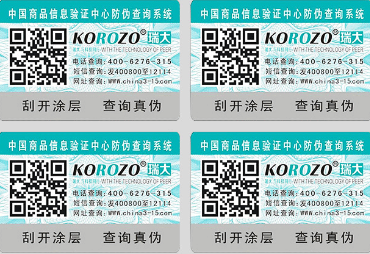 有獎體化防偽標簽以先進的數碼防偽系統為基礎,并經過幣紋、團花、雙卡、熒光、溫變、微縮等多種防偽技術手段處理,可以最有效地防止產品被假冒、復制和回收。數碼防偽可以增強用戶的購買信心,提升產品競爭力。同時企業可以通過防偽設置“刮刮獎” ,實現有獎促銷。