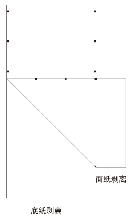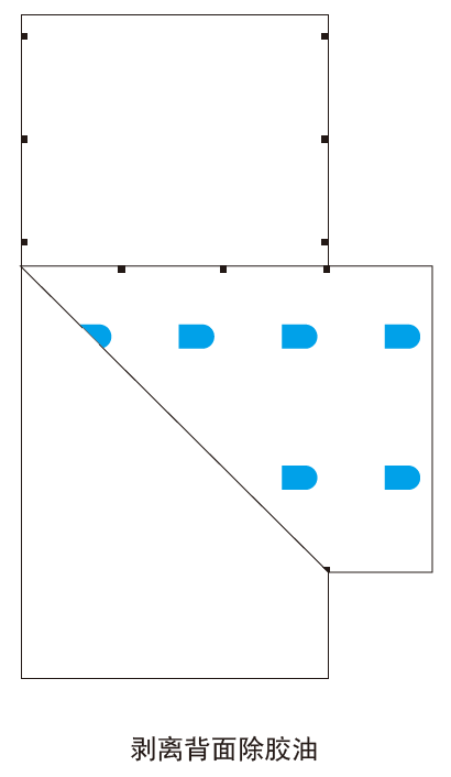 如下圖,不干膠標簽面層和底層剝離后,在面層反面印有可變碼的位置處,采用印刷方式覆蓋透明除膠油,保護油覆蓋住面層反面可變碼處的不干膠層,讓背面局部不具備粘性,達到面層背面局部除膠的效果