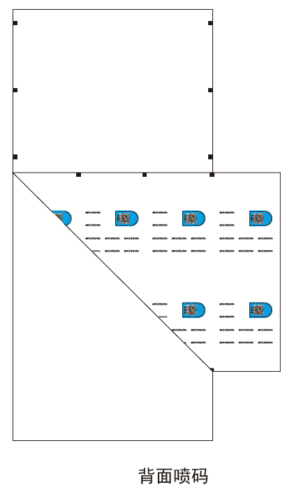面層的背面噴印關聯變碼組合,然后,在正面噴印關聯碼,自動復合,聯線完成,自動翻轉前后校對